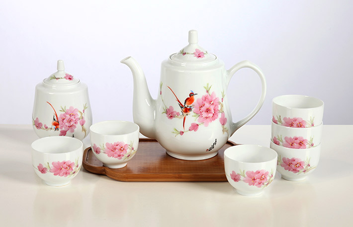 8頭手繪茶具(水點桃花)