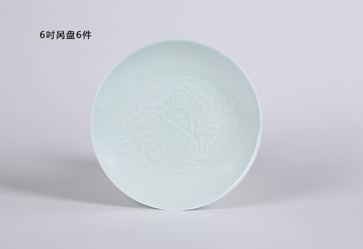 32頭影青雕刻餐具荷花