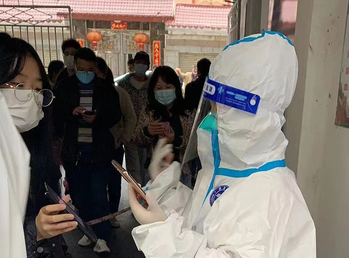 社區(qū)“雙報(bào)到”,抗疫顯擔(dān)當(dāng)。疫情來(lái)襲,黨員穿上“大白”防護(hù)服、做好秩序維護(hù)、發(fā)放健康檢測(cè)表、信息錄入、政策宣傳、掃碼查驗(yàn)、上門進(jìn)行采集核酸……。在各管控小區(qū),黨員志愿者們的身影,一直在為小區(qū)居民們辛苦地付出著?!拔覀兌际切^(qū)業(yè)主,又都黨員志愿者,在這種特殊時(shí)刻更要挺身而出,體現(xiàn)作為黨員的本分,在危難時(shí)刻顯擔(dān)當(dāng)。根據(jù)防疫工作安排,每天的工作時(shí)長(zhǎng)都不固定,但我們每天都從半夜工作到凌晨。我們社區(qū)大家的配合度都很高,整個(gè)小區(qū)情況比較平穩(wěn),我們覺(jué)得能夠在疫情防控工作貢獻(xiàn)一些力量感到很開(kāi)心。”危永清說(shuō)道。