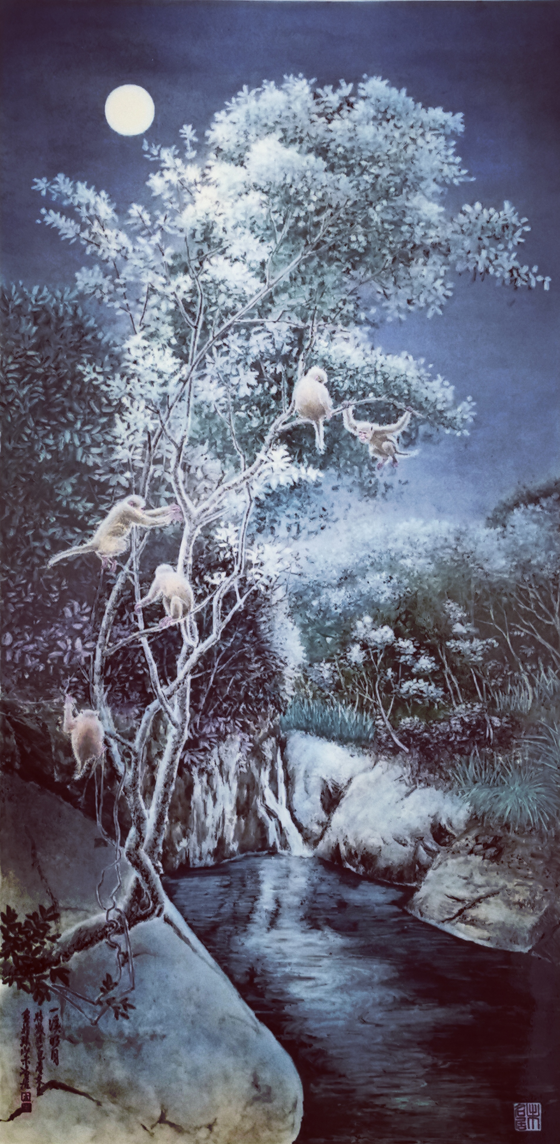 2021年作品《月昇溪林》釉上彩瓷瓶在華逸國際拍賣。